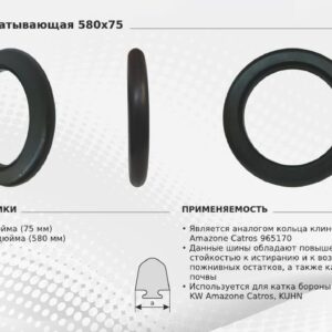8 300 руб.Бандаж 580х75 резиновый монолитный (БДТ, Amazone CATROS, KUHN) 955877, 965170 (SMIT TYRES)
